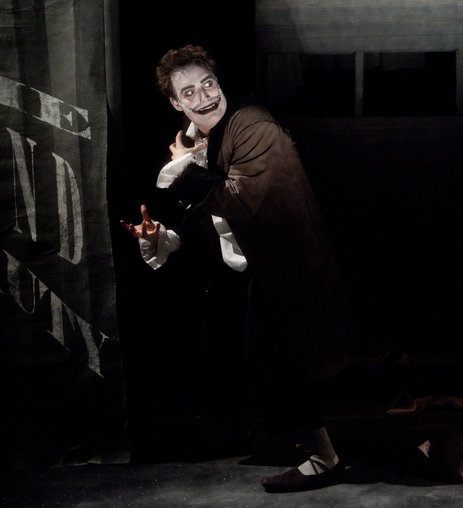 Based on the Victor Hugo novel and the 1928 silent film of the same name, The Man Who Laughs tells the tale of a man whose face has been carved into a permanent smile and the people who both love and exploit him. A story about found & chosen family, theatre, and life on the margins, the play simulates the experience of silent film, with dialogue and narration projected onto title cards, live piano accompaniment, and vibrant black-and-white sets, costumes, and makeup.